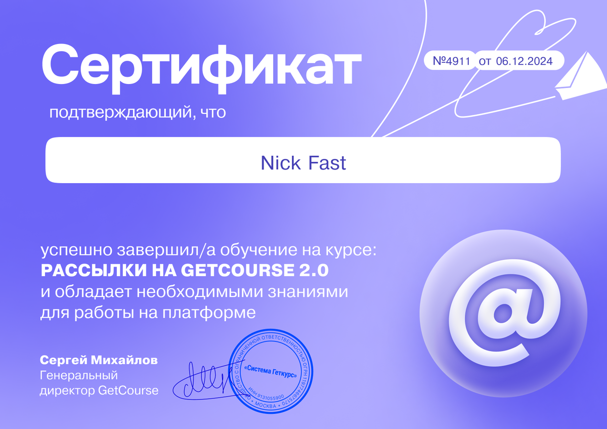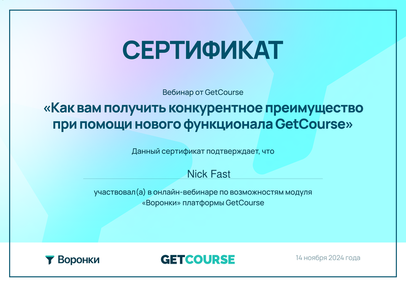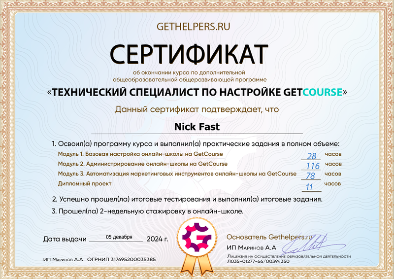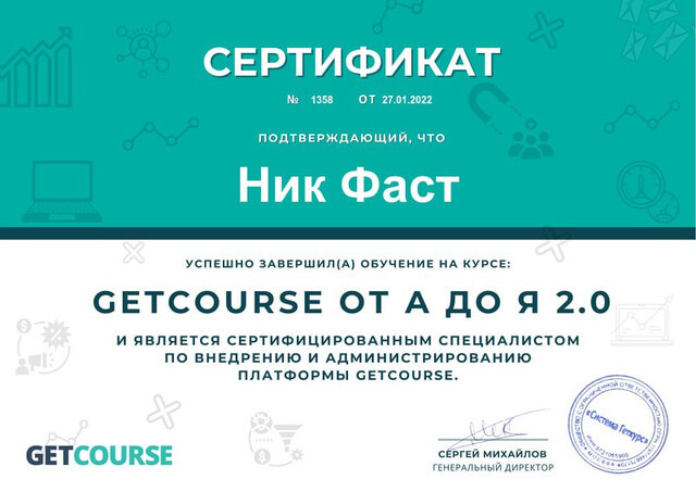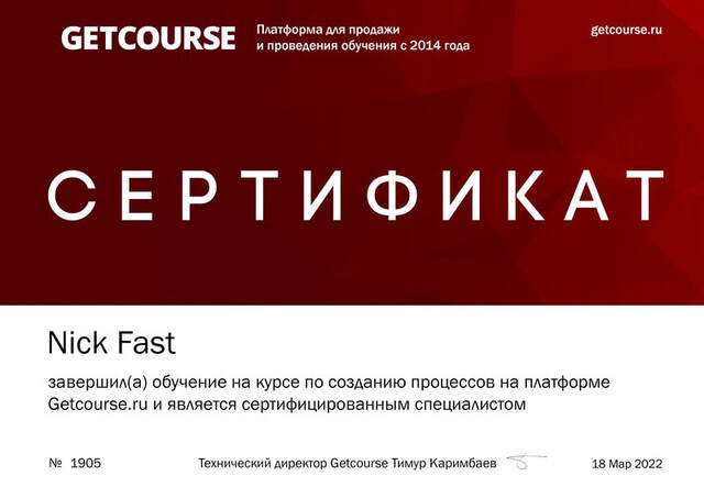 - Сертификация от GetCourse